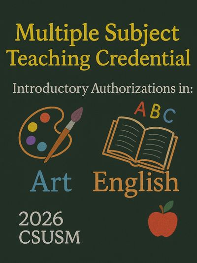 I am currently pursuing a Multiple Subject Teaching Credential at California State University San Marcos. I expect to graduate in 2026 with my preliminary multiple subject credential, including introductory authorizations in English and Art. Over the years I have had experience with Montessori education, project-based learning, special education (ASD), independent study programs, and traditional curriculums based on California Content Standards. As a future educator I intend to pull from the strengths of all the educational environments which I have been exposed to.